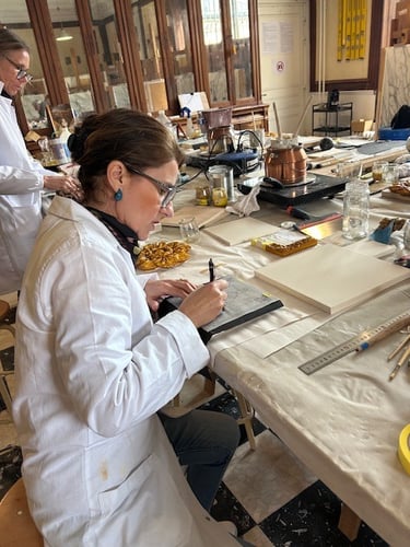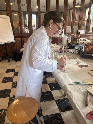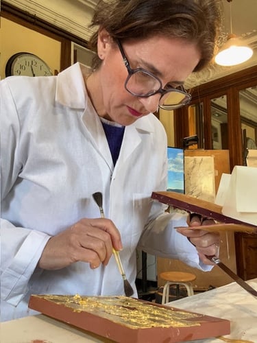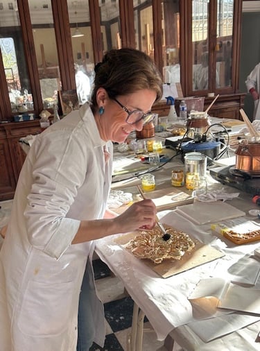 Soucieuse de préserver les techniques artisanales liées au mobilier ancien, j’ai suivi une formation intensive de cinq jours à Versailles consacrée à la dorure traditionnelle.